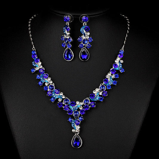 The New Bride Jewelry Color Diamond Earrings Necklace Fashion Necklace Set Can Be Customized