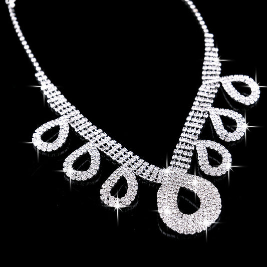 Foreign trade explosion bride alloy diamond necklace earrings set wedding jewelry and jewelry accessories