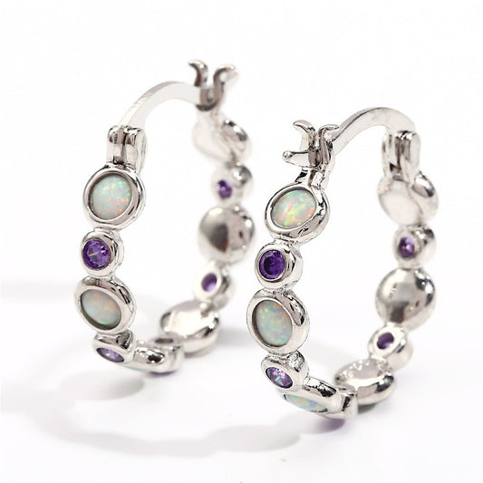 Round Opal Color Zircon Full Diamond Ring Ear Clip Female
