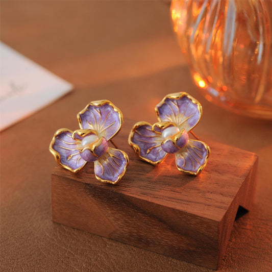 Diamond Colorful Oil Necklace Petal Stud Earrings