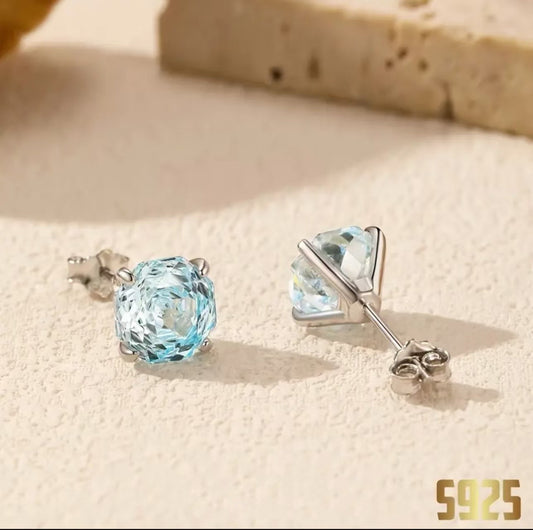 925 Silver Needle Exaggerated Geometric Full Diamond Earrings