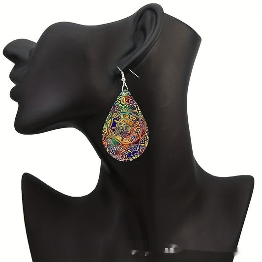 Pattern Small Water Drop Cross Mirror Popular Wooden Earrings