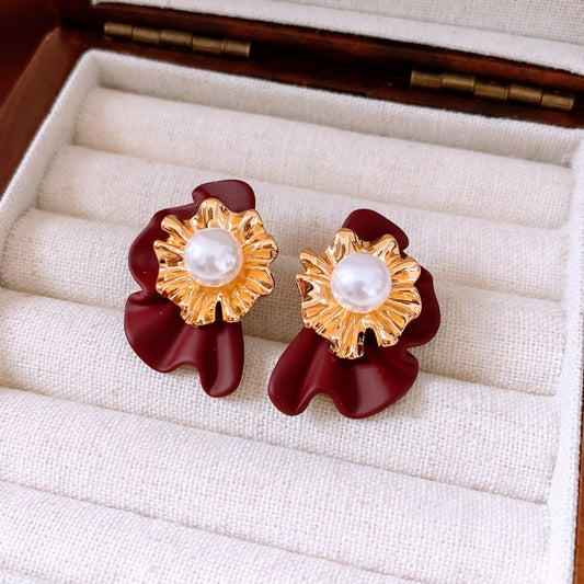 Real Gold Electroplated Silver Needle Pearl Flower Earrings