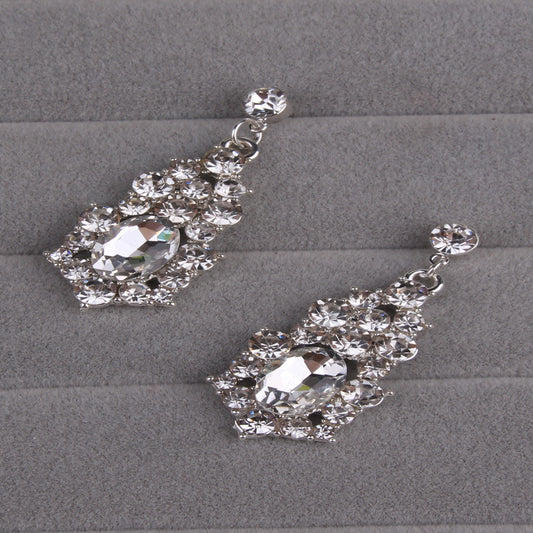Western Wedding Photography Wedding Bride Necklace Earrings Simple Two Piece Suite Imported Transparent Diamond Jewelry
