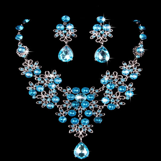 The New Bride Jewelry Color Diamond Earrings Necklace Fashion Necklace Set Can Be Customized