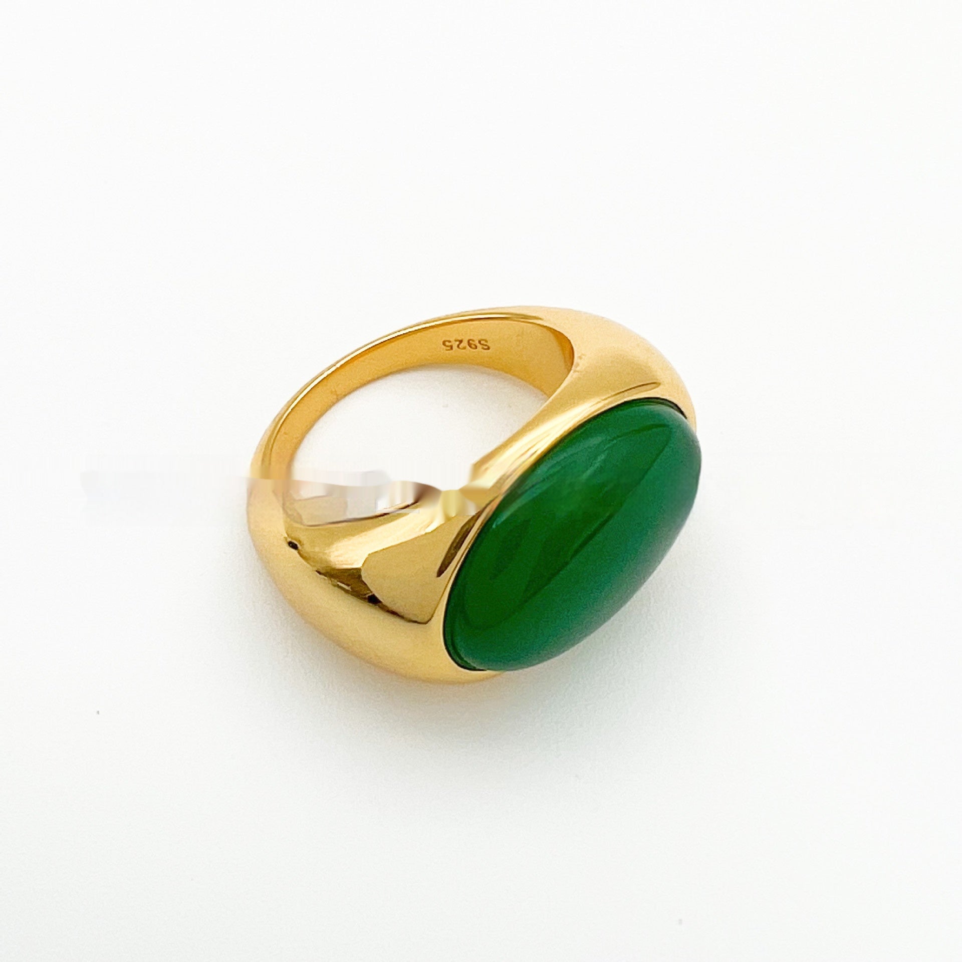 Oval Green Agate Natural Gemstone Dome Ring
