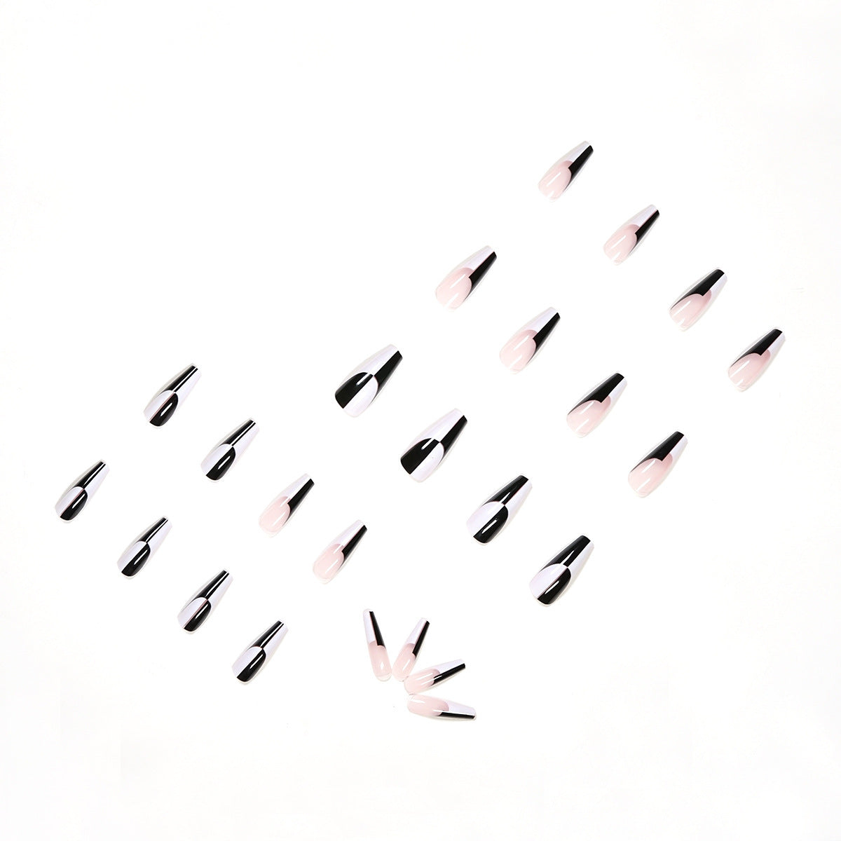 Simple Black And White Color Matching Long Nails Removable Nail Tip 24